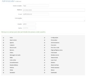 No Admin, você pode cadastrar novos administradores e limitar ou não seus suas permissões. Com isso você pode cadastrar diversas pessoas para ajudar na administração do site. Você determina o administrador pode ou não acessar.